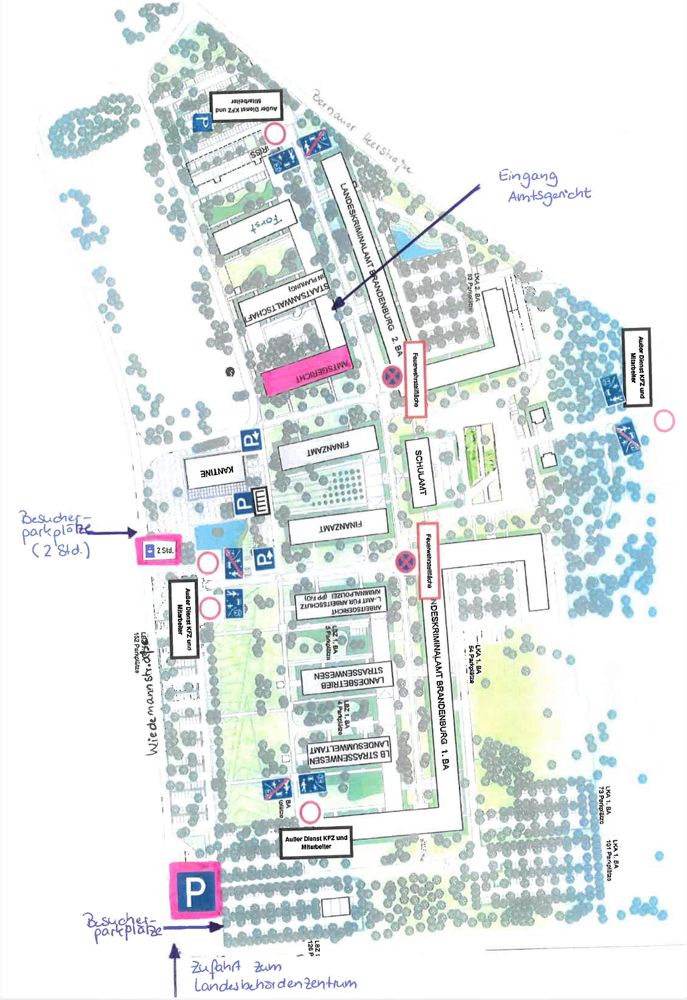 Wenn Sie mit dem Auto anreisen, sind auf dem Gelände des Landesbehördenzentrums Besucherparkplätze ausgewiesen.